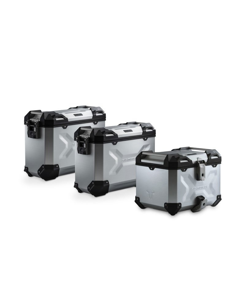 Ten zestaw to wszechstronny i bezobsługowy pakiet na każdą wycieczkę. Wodoszczelne i pyłoszczelne aluminiowe kufry TRAX ADV, czyli dwa kufry boczne i centralny zapewniają najlepszą ochronę bagażu. Dedykowane dla danego modelu motocykla stelaże na kufry boczne PRO oraz stelaż na kufer centralny Adventure-RACKgwarantują optymalne dopasowanie i bezpieczne zamocowanie aluminiowych kufrów. Nasze wytrzymałe aluminiowe kufry TRAX ADV przekonują swoją stabilnością, nieprzepuszczalnością wody i pyłu, eleganckim stylem, przemyślanymi funkcjami i dużym wyborem dodatkowych akcesoriów. Aby jeszcze zwiększyć pojemność ładunkową, zestaw Adventure zawiera dwie akcesoryjne torby TRAX M / L. Są one mocowane na pokrywy kufrów bocznych. Torby te są wodoszczelne, a bagaż w nich schowany będzie bardzo szybko dostępny.