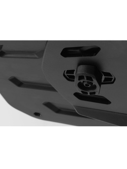 - Zatrzask na płycie adaptacyjnej wyposażony jest w mechanizm zabezpieczający, który gwarantuje bezpieczne zamocowanie kufrów centralnych TRAX jak i sakw SysBag 15/30 oraz za pomocą adaptera – tank bagów serii EVO