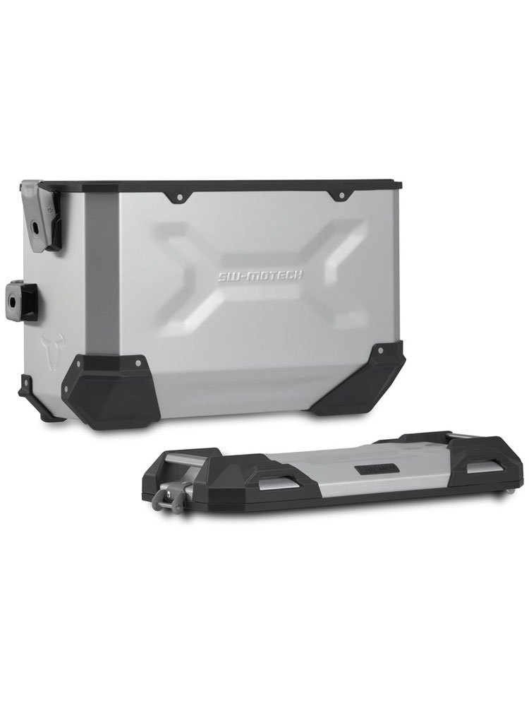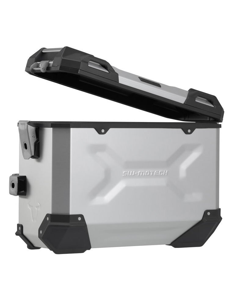 Wytrzymałe aluminiowe kufry TRAX ADV sprawiają, że poczujesz się jak w domu na każdym odcinku drogi. Całkowicie zdejmowana pokrywa z uchwytami wykonanymi z anodyzowanego aluminium oraz zapięcie błyskawiczne ułatwiają załadunek i rozładunek bagażu motocyklowego; fazowana krawędź boczna zapewnia duży prześwit podczas pokonywania zakrętów. Dzięki temu kompletnemu rozwiązaniu masz wszystkie elementy, które potrzebujesz podczas podróży: dwa wodoodporne kufry boczne TRAX ADV, dwa zdejmowane stelaże boczne SW-MOTECH, zestaw adapterów, zestaw zamków, ogranicznik pokrywy i zabezpieczenie antykradzieżowe w atrakcyjnej cenie. Specjalny stelaż i wielkość kufrów są idealnie dopasowane do tylnego kształtu i układu wydechowego motocykla. Kufry TRAX ADV są stabilne i nieprzepuszczalne dla pyłu i wody, a także łatwe w obsłudze.
