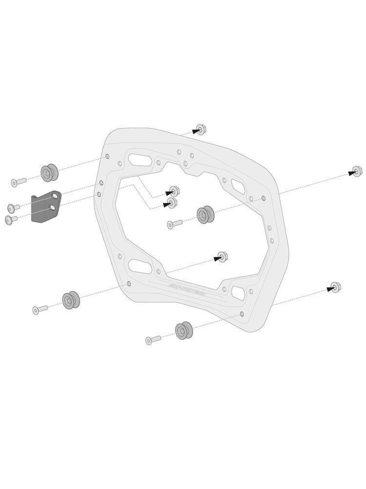 - Zestaw adapterów do przymocowania bocznych kudrów TRAX lub NANUK do stelaża bocznego SW-MOTECH PRO