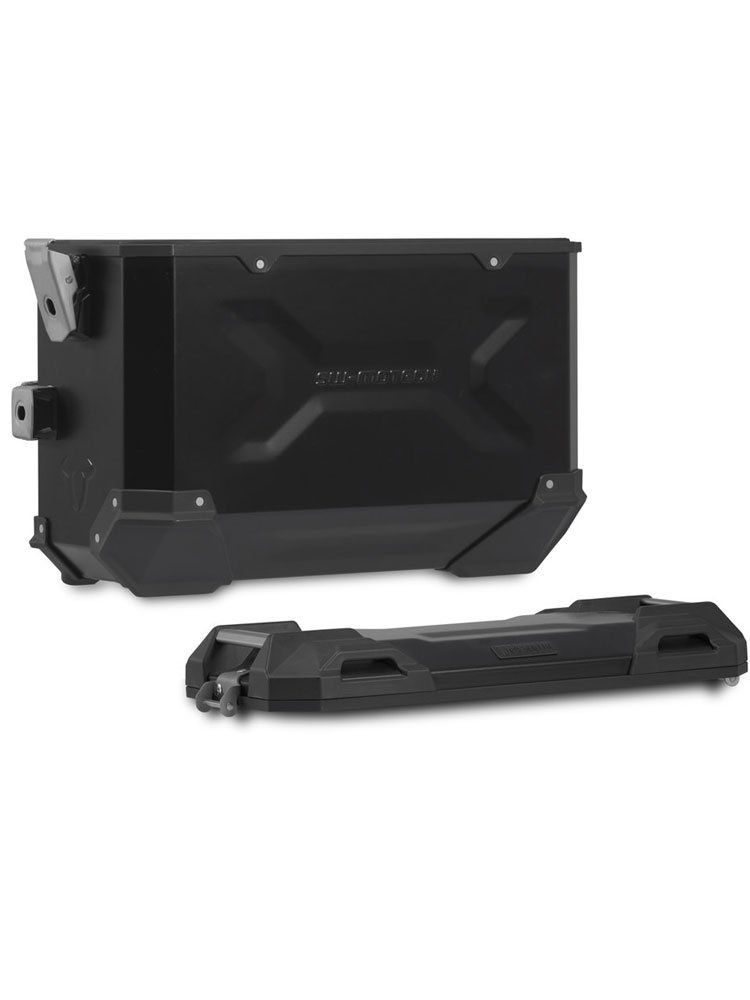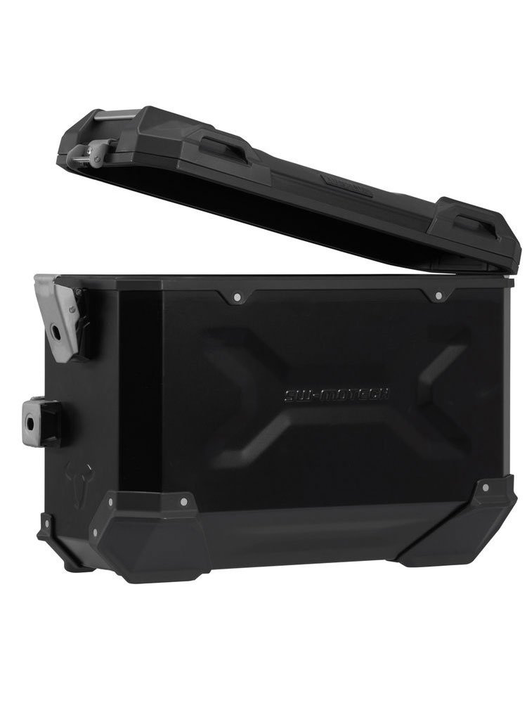 Wytrzymałe aluminiowe kufry TRAX ADV sprawiają, że poczujesz się jak w domu na każdym odcinku drogi. Całkowicie zdejmowana pokrywa z uchwytami wykonanymi z anodyzowanego aluminium oraz zapięcie błyskawiczne ułatwiają załadunek i rozładunek bagażu motocyklowego; fazowana krawędź boczna zapewnia duży prześwit podczas pokonywania zakrętów. Dzięki temu kompletnemu rozwiązaniu masz wszystkie elementy, które potrzebujesz podczas podróży: dwa wodoodporne kufry boczne TRAX ADV, dwa zdejmowane stelaże boczne SW-MOTECH, zestaw adapterów, zestaw zamków, ogranicznik pokrywy i zabezpieczenie antykradzieżowe w atrakcyjnej cenie. Specjalny stelaż i wielkość kufrów są idealnie dopasowane do tylnego kształtu i układu wydechowego motocykla. Kufry TRAX ADV są stabilne i nieprzepuszczalne dla pyłu i wody, a także łatwe w obsłudze.