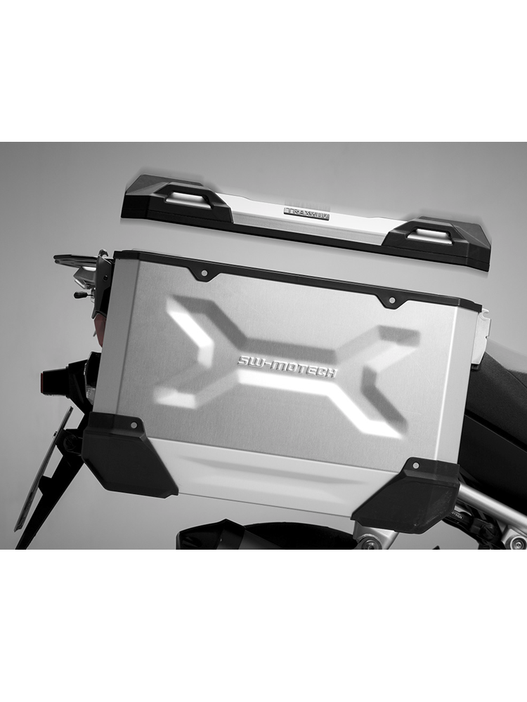 Kufry boczne TRAX ADVENTURE zaprojektowane i wykonane z dbałością o najmniejsze detale. Wytrzymałe i szczelnie zabezpieczone przed przedostawaniem się wody czy kurzu do wewnątrz. Łatwe w obsłudze. Precyzyjnie skonstruowane, o ściankach z aluminium o grubości 1,5 mm sprawdzą się zarówno podczas dłuższych i bardziej wymagających podróży jak i podczas krótkich wycieczek motocyklowych.