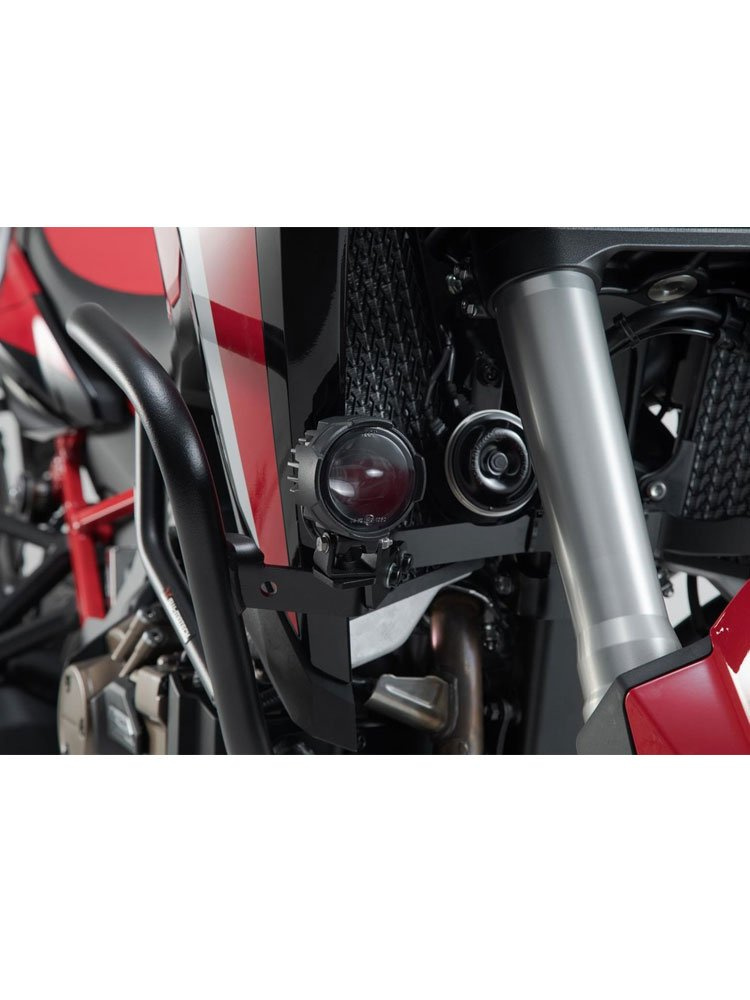 Mocowania dostosowane do motocykla umożliwiają optymalne ustawienie świateł EVO w Honda Africa Twin. Wytrzymałe elementy wykonane ze stali malowanej proszkowo są przykręcane bezpośrednio do crahbarów SW-MOTECH. Gwarantują bezpieczne trzymanie świateł EVO, nawet podczas jazdy w terenie.