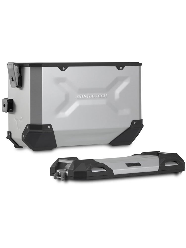 Wytrzymałe aluminiowe kufry TRAX ADV sprawiają, że czujesz się jak w domu na każdym odcinku drogi: wytłoczone wzory zwiększają stabilność spawanego aluminium o grubości 1,5 milimetra. Całkowicie zdejmowana pokrywa z uchwytami wykonanymi z anodyzowanego aluminium oraz zapięcie błyskawiczne ułatwiają załadunek i rozładunek bagażu motocyklowego; fazowana krawędź boczna zapewnia duży prześwit podczas pokonywania zakrętów. Stelaż i wielkość kufrów są idealnie dopasowane do tylnego kształtu i układu wydechowego motocykla. Przy rozwoju TRAX ADVENTURE pojawiło się następujące wyzwanie. Zbudować kufry, które pokonają wszystkie przeszkody motocyklowej codzienności, lekkie i łatwe w obsłudze, po prostu dobre: od praktycznego zamka błyskawicznego, przez zdejmowalną pokrywę, po ergonomiczny uchwyt. TRAX ADVENTURE łączą wysoką jakość z niską wagą. Ważą tylko od 4,6kg do 5,4 kg, czyli należą do grupy najlżejszych kufrów w swojej klasie.