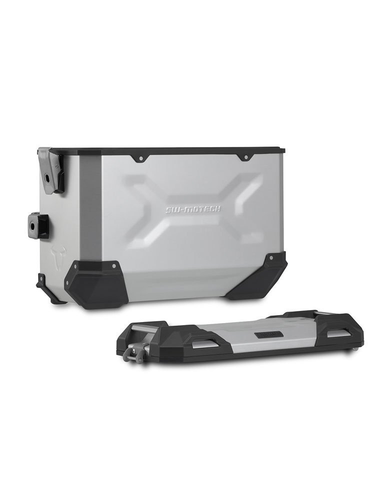 Wytrzymałe aluminiowe kufry TRAX ADV sprawiają, że czujesz się jak w domu na każdym odcinku drogi: wytłoczone wzory zwiększają stabilność spawanego aluminium o grubości 1,5 milimetra. Całkowicie zdejmowana pokrywa z uchwytami wykonanymi z anodyzowanego aluminium oraz zapięcie błyskawiczne ułatwiają załadunek i rozładunek bagażu motocyklowego; fazowana krawędź boczna zapewnia duży prześwit podczas pokonywania zakrętów. Stelaż i wielkość kufrów są idealnie dopasowane do tylnego kształtu i układu wydechowego motocykla. Przy rozwoju TRAX ADVENTURE pojawiło się następujące wyzwanie. Zbudować kufry, które pokonają wszystkie przeszkody motocyklowej codzienności, lekkie i łatwe w obsłudze, po prostu dobre: od praktycznego zamka błyskawicznego, przez zdejmowalną pokrywę, po ergonomiczny uchwyt. TRAX ADVENTURE łączą wysoką jakość z niską wagą. Ważą tylko od 4,6kg do 5,4 kg, czyli należą do grupy najlżejszych kufrów w swojej klasie.