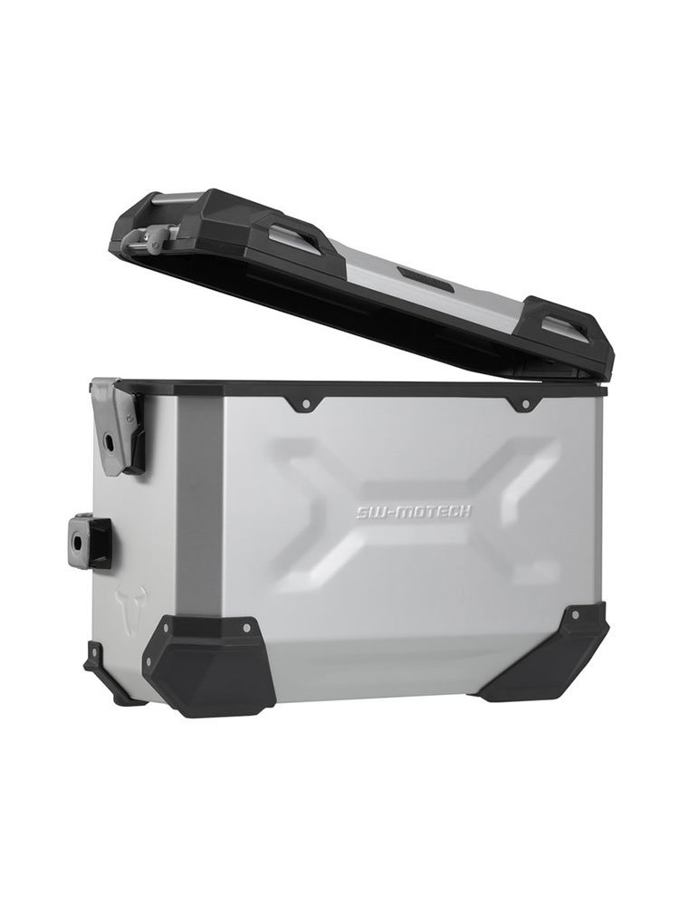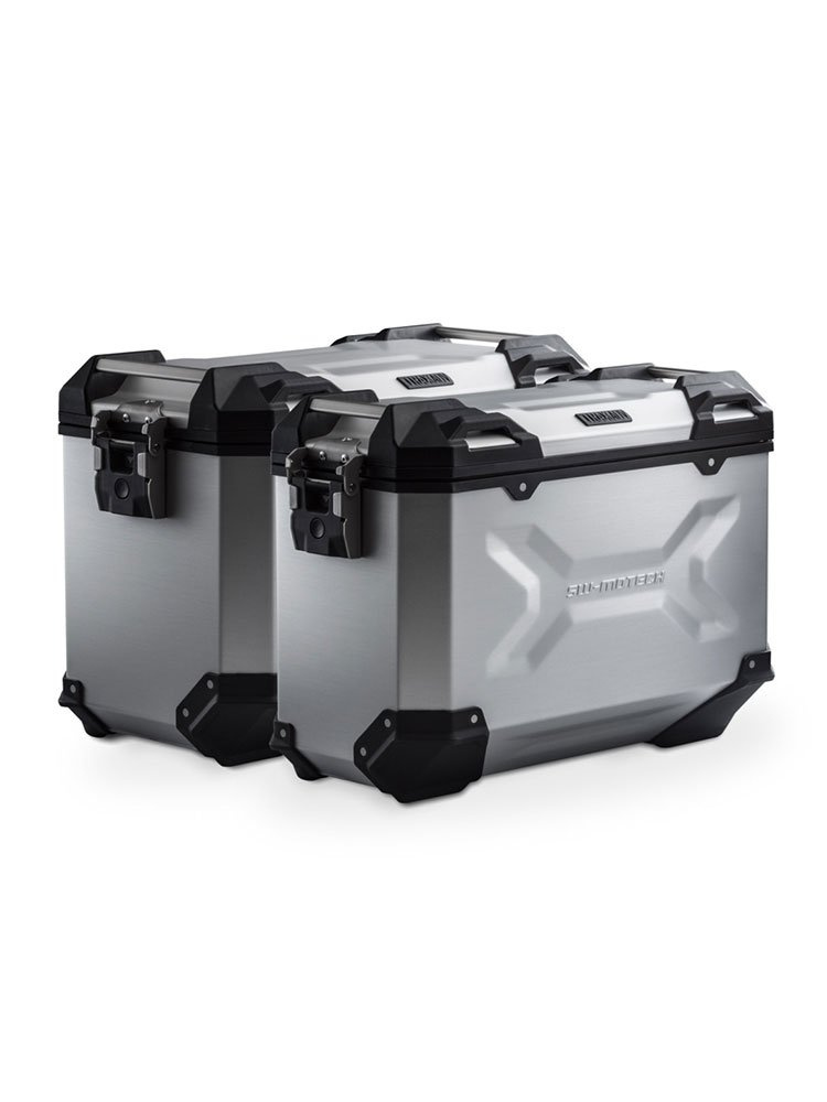 Wytrzymałe aluminiowe kufry TRAX ADV sprawiają, że poczujesz się jak w domu na każdym odcinku drogi. Całkowicie zdejmowana pokrywa z uchwytami wykonanymi z anodyzowanego aluminium oraz zapięcie błyskawiczne ułatwiają załadunek i rozładunek bagażu motocyklowego; fazowana krawędź boczna zapewnia duży prześwit podczas pokonywania zakrętów. Dzięki temu kompletnemu rozwiązaniu masz wszystkie elementy, które potrzebujesz podczas podróży: dwa wodoodporne kufry boczne TRAX ADV, dwa zdejmowane stelaże boczne SW-MOTECH, zestaw adapterów, zestaw zamków, ogranicznik pokrywy i zabezpieczenie antykradzieżowe w atrakcyjnej cenie. Specjalny stelaż i wielkość kufrów są idealnie dopasowane do tylnego kształtu i układu wydechowego motocykla. Kufry TRAX ADV są stabilne i nieprzepuszczalne dla pyłu i wody, a także łatwe w obsłudze.