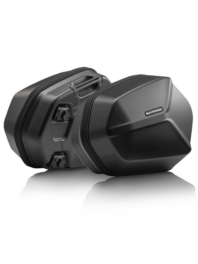 - Bezpiecznie przymocowane za pomocą szybkozłączek do zdejmowanych stelaży bocznych PRO / EVO firmy SW-MOTECH