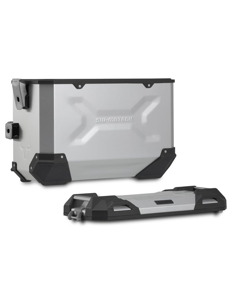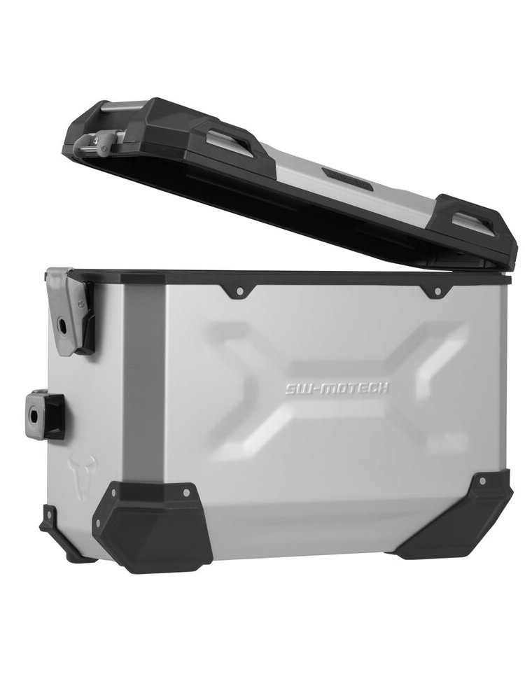 Wytrzymałe aluminiowe kufry TRAX ADV sprawiają, że czujesz się jak w domu na każdym odcinku drogi: wytłoczone wzory zwiększają stabilność spawanego aluminium o grubości 1,5 milimetra. Całkowicie zdejmowana pokrywa z uchwytami wykonanymi z anodyzowanego aluminium oraz zapięcie błyskawiczne ułatwiają załadunek i rozładunek bagażu motocyklowego; fazowana krawędź boczna zapewnia duży prześwit podczas pokonywania zakrętów. Stelaż i wielkość kufrów są idealnie dopasowane do tylnego kształtu i układu wydechowego motocykla. Przy rozwoju TRAX ADVENTURE pojawiło się następujące wyzwanie. Zbudować kufry, które pokonają wszystkie przeszkody motocyklowej codzienności, lekkie i łatwe w obsłudze, po prostu dobre: od praktycznego zamka błyskawicznego, przez zdejmowalną pokrywę, po ergonomiczny uchwyt. TRAX ADVENTURE łączą wysoką jakość z niską wagą. Ważą tylko od 4,6kg do 5,4 kg, czyli należą do grupy najlżejszych kufrów w swojej klasie.