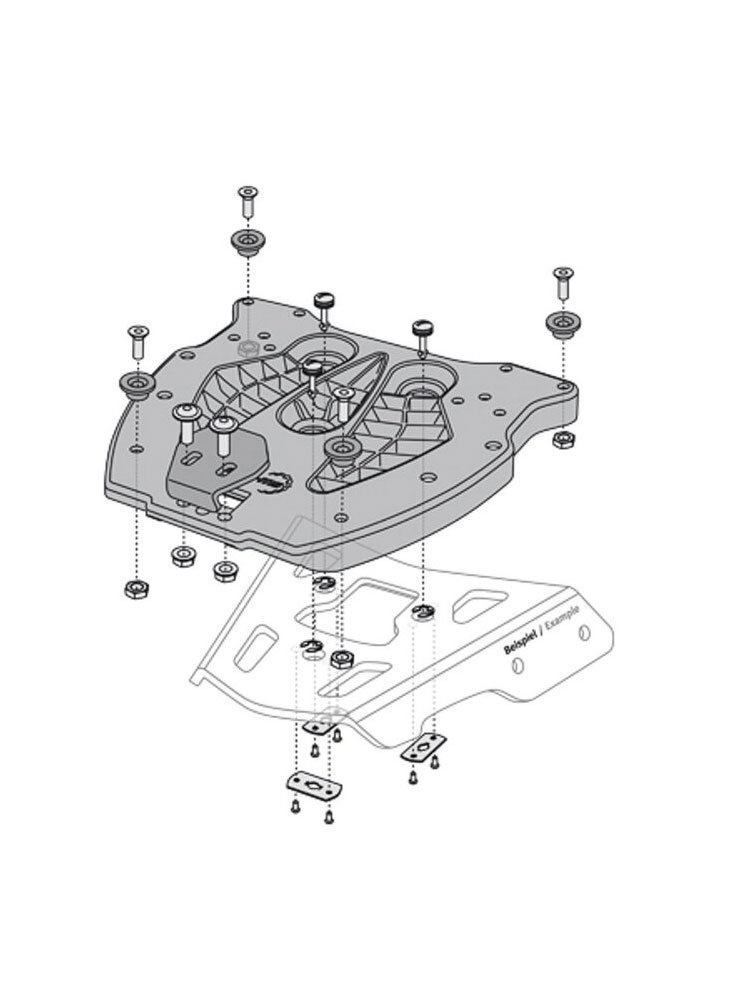 - Może być również stosowany w połączeniu z bocznymi bagażnikami PRO / EVO i bocznymi skrzyniami TRAX
