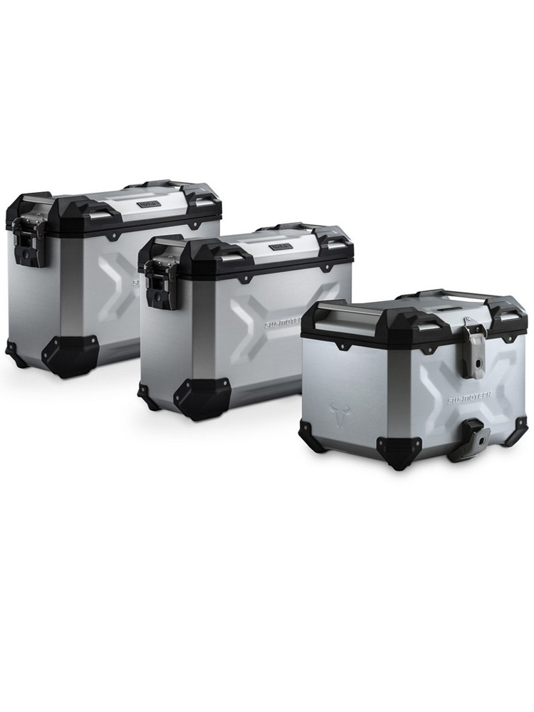 Ten zestaw to wszechstronny i bezobsługowy pakiet na każdą wycieczkę. Wodoszczelne i pyłoszczelne aluminiowe kufry TRAX ADV, czyli dwa kufry boczne i centralny zapewniają najlepszą ochronę bagażu. Dedykowane dla danego modelu motocykla stelaże na kufry boczne PRO oraz stelaż na kufer centralny Adventure-RACK gwarantują optymalne dopasowanie i bezpieczne zamocowanie aluminiowych kufrów. Nasze wytrzymałe aluminiowe kufry TRAX ADV przekonują swoją stabilnością, nieprzepuszczalnością wody i pyłu, eleganckim stylem, przemyślanymi funkcjami i dużym wyborem dodatkowych akcesoriów. Aby jeszcze zwiększyć pojemność ładunkową, zestaw Adventure zawiera dwie akcesoryjne torby TRAX M / L. Są one mocowane na pokrywy kufrów bocznych. Torby te są wodoszczelne, a bagaż w nich schowany będzie bardzo szybko dostępny.