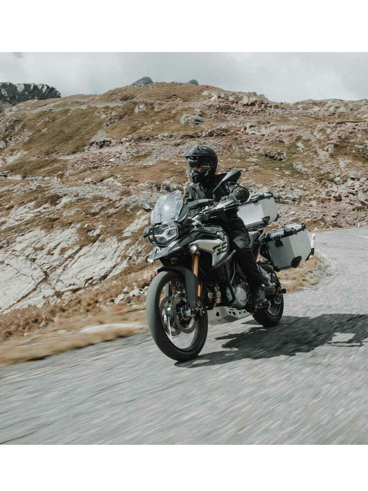 Wytrzymałe aluminiowe kufry TRAX ADV sprawiają, że czujesz się jak w domu na każdym odcinku drogi: wytłoczone wzory zwiększają stabilność spawanego aluminium o grubości 1,5 milimetra. Całkowicie zdejmowana pokrywa z uchwytami wykonanymi z anodyzowanego aluminium oraz zapięcie błyskawiczne ułatwiają załadunek i rozładunek bagażu motocyklowego; fazowana krawędź boczna zapewnia duży prześwit podczas pokonywania zakrętów. Stelaż i wielkość kufrów są idealnie dopasowane do tylnego kształtu i układu wydechowego motocykla. Przy rozwoju TRAX ADVENTURE pojawiło się następujące wyzwanie. Zbudować kufry, które pokonają wszystkie przeszkody motocyklowej codzienności, lekkie i łatwe w obsłudze, po prostu dobre: od praktycznego zamka błyskawicznego, przez zdejmowalną pokrywę, po ergonomiczny uchwyt. TRAX ADVENTURE łączą wysoką jakość z niską wagą. Ważą tylko od 4,6kg do 5,4 kg, czyli należą do grupy najlżejszych kufrów w swojej klasie.