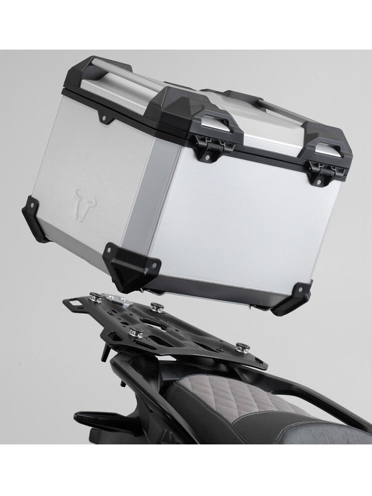 Kompletny zestaw, czyli wszystkie produkty pod jednym indeksem za pomocą których zamontujesz kufer centralny na swoim motocyklu. W skład tego zestawu wchodzą wszystkie produkty, tj.: kufer centralny TraX ADV, zamki do kufrów, płyta adaptacyjna, dedykowany do motocykla stelaż Adventure-Rack. Przy rozwoju TraX ADV pojawiło się następujące wyzwanie. Zbudować kufry, które pokonają wszystkie przeszkody motocyklowej codzienności, lekkie i łatwe w obsłudze, po prostu dobre: od praktycznego zamka błyskawicznego, przez zdejmowalną pokrywę, po ergonomiczny uchwyt. TraX ADV łączą wysoką jakość z niską wagą. Ważą tylko od 4,6kg do 5,4 kg, czyli należą do grupy najlżejszych kufrów w swojej klasie.