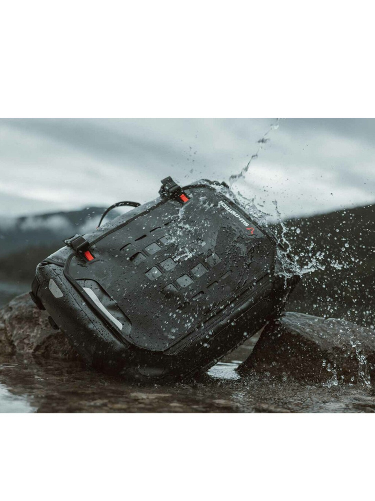 Torby są montowane na bagażniku PRO lub za pomocą pętli na ogonie. Podobnie jak wodoodporne torby na zbiornik, SysBag L WP są wykonane z podstawy TPU i komponentów EVA. Oba materiały są zgrzewane termicznie i łączone ze sobą, tworząc zwartą całość, dzięki czemu torba jest całkowicie wodoodporna. Modele SysBag WP są niezawodnymi towarzyszami bezkompromisowych przygód motocyklowych. Dzięki starannemu doborowi materiałów i starannemu wykonaniu torby są całkowicie wodoodporne i niezwykle wytrzymałe.