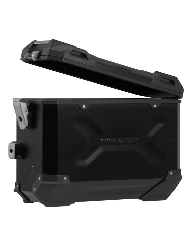Aluminiowe kufry SW-MOTECH TRAX ADV na nowo definiują doskonałość bagażu motocyklowego. Wykonane z wytrzymałego aluminium o grubości 1,5 milimetra z wytłoczonymi wzorami zwiększającymi stabilność, TRAX ADV jest świadectwem wytrzymałości i niezawodności. Całkowicie zdejmowana pokrywa, wyposażona w uchwyty do przenoszenia z anodyzowanego aluminium i szybkozamykacze, zapewnia łatwy załadunek i rozładunek, a ścięta krawędź boczna gwarantuje optymalny prześwit pod pojazdem podczas pokonywania zakrętów. Zestaw kufrów Trax ADV obejmuje dwa wodoodporne kufry boczne TRAX ADV, uzupełnione dwoma zdejmowanymi bocznymi stelażami SW-MOTECH, zestaw adapterów, zestaw zamków, ogranicznik pokrywy i zabezpieczenie antykradzieżowe – wszystko w pakiecie w atrakcyjnej cenie. Stelaż dostosowany do konkretnego motocykla i precyzyjnie dopasowane rozmiary kufrów idealnie współgrają z kształtem tyłu motocykla i układem wydechowym. Przy opracowywaniu TRAX ADV nie było żadnych kompromisów. Kładąc nacisk na stabilność, nieprzepuszczalność dla kurzu i wody oraz przyjazną dla użytkownika obsługę, te wysokiej jakości aluminiowe kufry sprostają każdemu wyzwaniu. Niezależnie od tego, czy wyruszasz na przygodę w terenie, dłuższą podróż czy szybką przejażdżkę, TRAX ADV ze ścianami o grubości 1,5 milimetra okazuje się niepokonanym mistrzem, gotowym towarzyszyć Ci w każdej podróży.