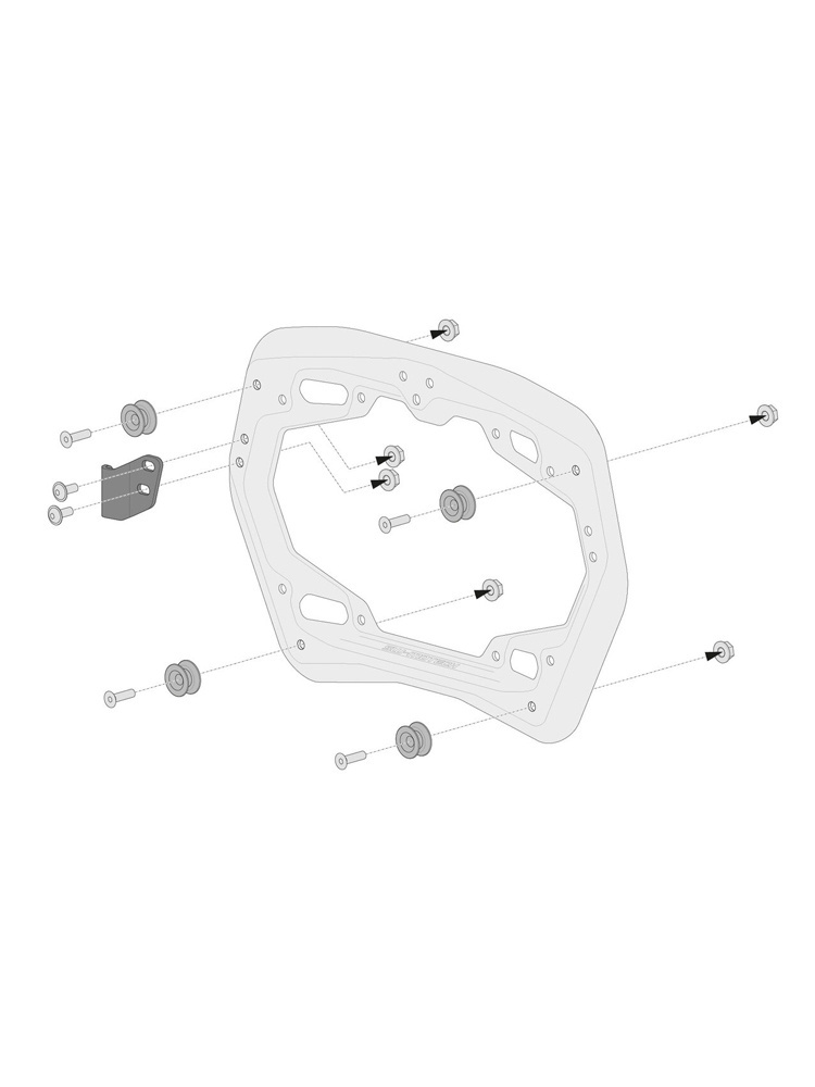 - Zestaw adapterów do przymocowania bocznych kudrów TRAX lub NANUK do stelaża bocznego SW-MOTECH PRO