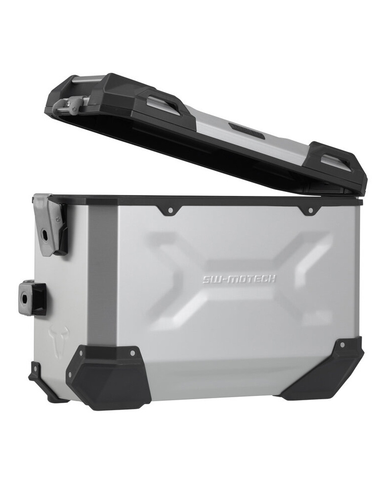 Aluminiowe kufry SW-MOTECH TRAX ADV na nowo definiują doskonałość bagażu motocyklowego. Wykonane z wytrzymałego aluminium o grubości 1,5 milimetra z wytłoczonymi wzorami zwiększającymi stabilność, TRAX ADV jest świadectwem wytrzymałości i niezawodności. Całkowicie zdejmowana pokrywa, wyposażona w uchwyty do przenoszenia z anodyzowanego aluminium i szybkozamykacze, zapewnia łatwy załadunek i rozładunek, a ścięta krawędź boczna gwarantuje optymalny prześwit pod pojazdem podczas pokonywania zakrętów. Zestaw kufrów Trax ADV obejmuje dwa wodoodporne kufry boczne TRAX ADV, uzupełnione dwoma zdejmowanymi bocznymi stelażami SW-MOTECH, zestaw adapterów, zestaw zamków, ogranicznik pokrywy i zabezpieczenie antykradzieżowe – wszystko w pakiecie w atrakcyjnej cenie. Stelaż dostosowany do konkretnego motocykla i precyzyjnie dopasowane rozmiary kufrów idealnie współgrają z kształtem tyłu motocykla i układem wydechowym. Przy opracowywaniu TRAX ADV nie było żadnych kompromisów. Kładąc nacisk na stabilność, nieprzepuszczalność dla kurzu i wody oraz przyjazną dla użytkownika obsługę, te wysokiej jakości aluminiowe kufry sprostają każdemu wyzwaniu. Niezależnie od tego, czy wyruszasz na przygodę w terenie, dłuższą podróż czy szybką przejażdżkę, TRAX ADV ze ścianami o grubości 1,5 milimetra okazuje się niepokonanym mistrzem, gotowym towarzyszyć Ci w każdej podróży.