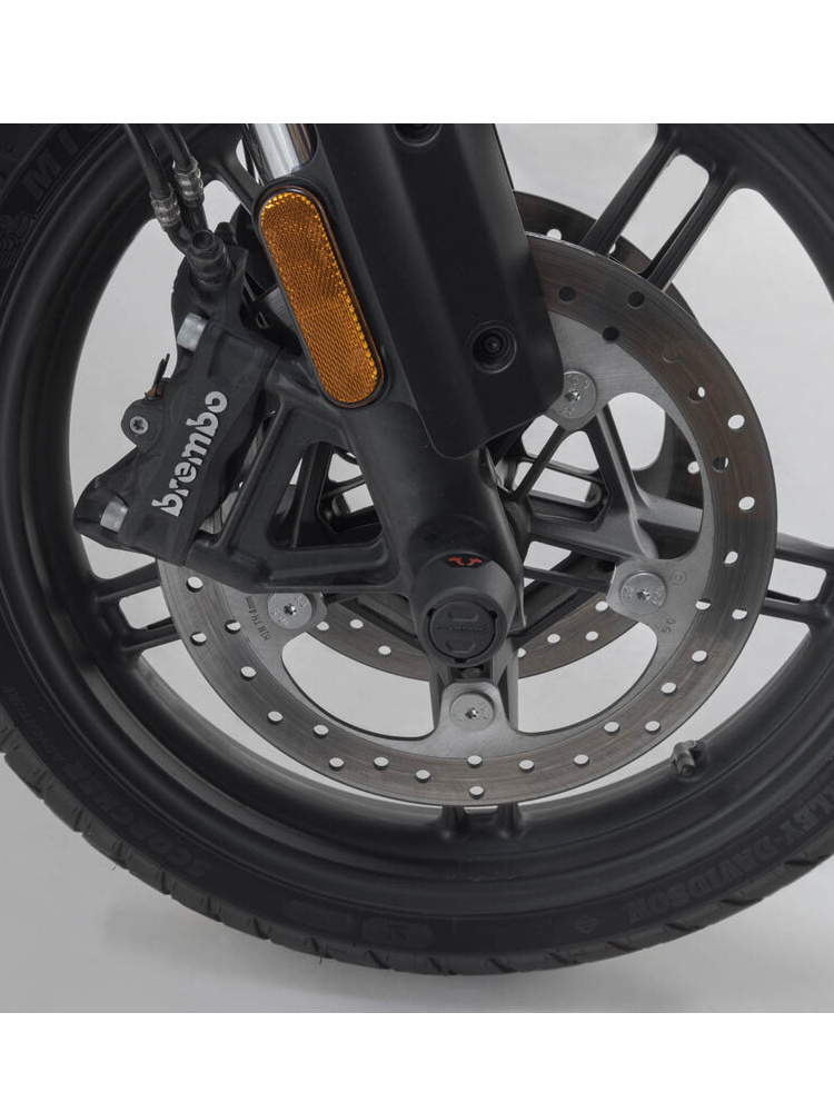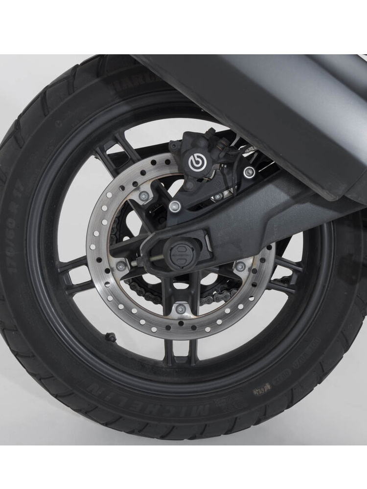 - Łatwy montaż za pomocą gwintu osi i podkładek dystansowych dostosowanych do modelu motocykla