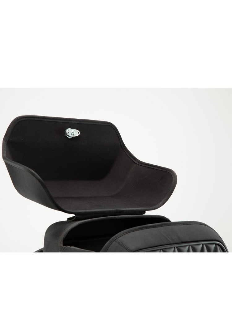 - Zoptymalizowana konstrukcja tylnego panelu zapewnia dodatkową dawkę stabilności i podąża za kształtem motocykla