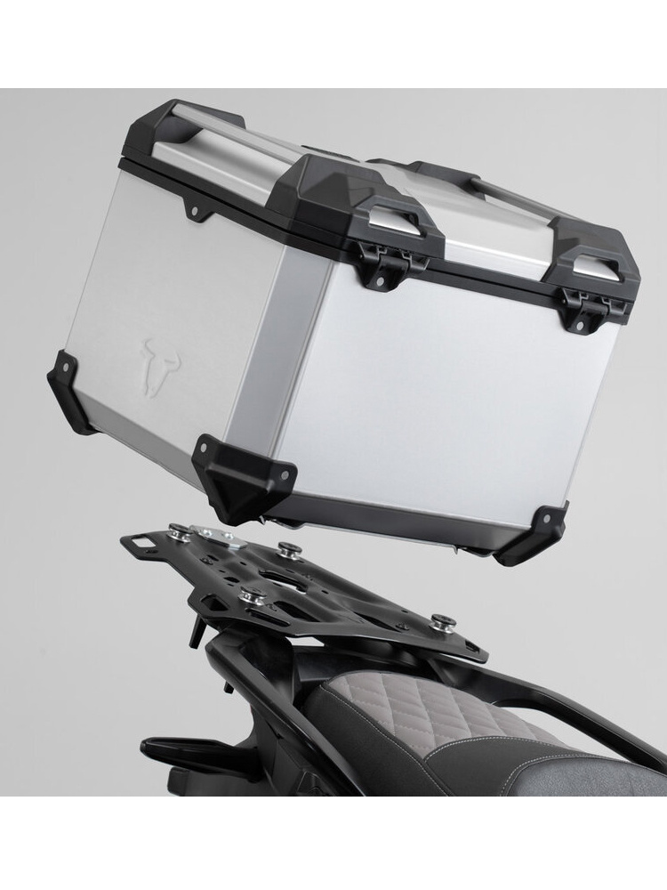 Kompletny zestaw, czyli wszystkie produkty pod jednym indeksem za pomocą których zamontujesz kufer centralny na swoim motocyklu. W skład tego zestawu wchodzą wszystkie produkty, tj.: kufer centralny TraX ADV, zamki do kufrów, płyta adaptacyjna, dedykowany do motocykla stelaż ADVENTURE-RACK. Przy rozwoju TraX ADV pojawiło się następujące wyzwanie. Zbudować kufry, które pokonają wszystkie przeszkody motocyklowej codzienności, lekkie i łatwe w obsłudze, po prostu dobre: od praktycznego zamka błyskawicznego, przez zdejmowalną pokrywę, po ergonomiczny uchwyt. TraX ADV łączą wysoką jakość z niską wagą. Ważą tylko od 4,6kg do 5,4 kg, czyli należą do grupy najlżejszych kufrów w swojej klasie.