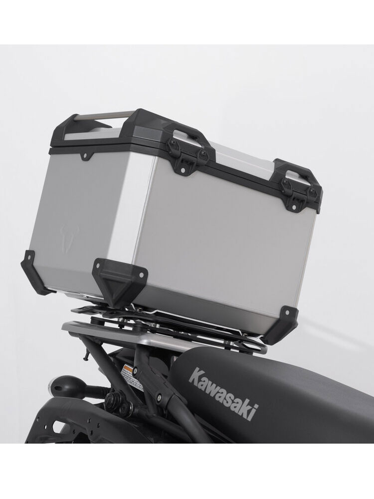 Zestaw: kufry boczne 37/45/38 + kufer centralny TRAX ADV + stelaże SW-MOTECH Kawasaki KLR 650 / S (22-), srebrne