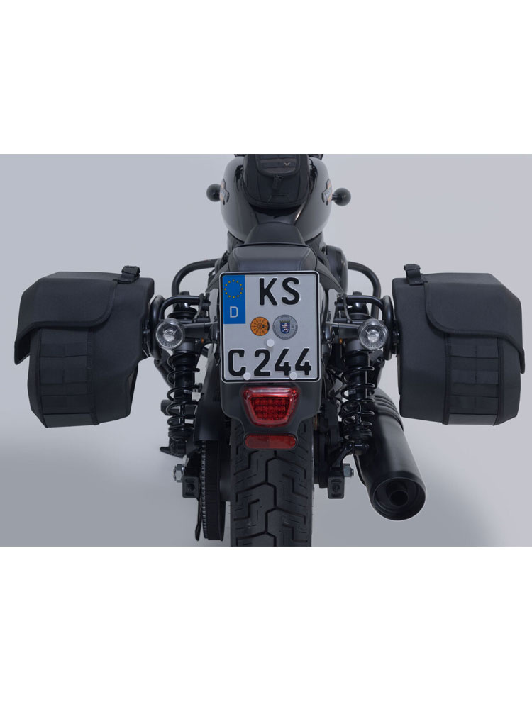 - Kompatybilny z bocznymi torbami Legend Gear LC1 / LC2, bocznymi skrzynkami ABS URBAN, SysBag 10/15 z płytą adaptera, uniwersalnym wspornikiem bocznym, tablicą rejestracyjną