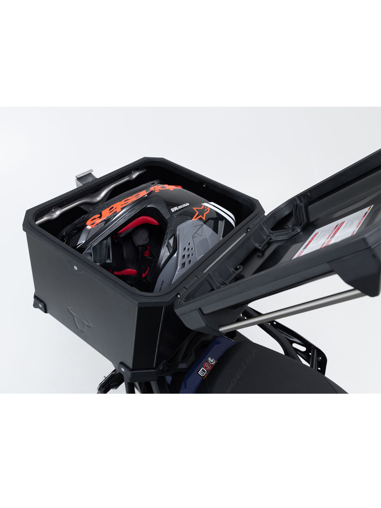 Kompletny zestaw, czyli wszystkie produkty pod jednym indeksem za pomocą których zamontujesz kufer centralny na swoim motocyklu. W skład tego zestawu wchodzą wszystkie produkty, tj.: kufer centralny TraX ADV, zamki do kufrów, płyta adaptacyjna, dedykowany do motocykla stelaż Street-Rack. Przy rozwoju TraX ADV pojawiło się następujące wyzwanie. Zbudować kufry, które pokonają wszystkie przeszkody motocyklowej codzienności, lekkie i łatwe w obsłudze, po prostu dobre: od praktycznego zamka błyskawicznego, przez zdejmowalną pokrywę, po ergonomiczny uchwyt. TraX ADV łączą wysoką jakość z niską wagą. Ważą tylko od 4,6kg do 5,4 kg, czyli należą do grupy najlżejszych kufrów w swojej klasie.