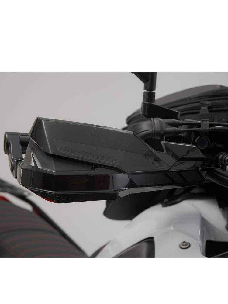 - Sportowe osłony dłoni wykonane z wytrzymałego tworzywa sztucznego, chroniące przed wiatrem, zimnem i deszczem
