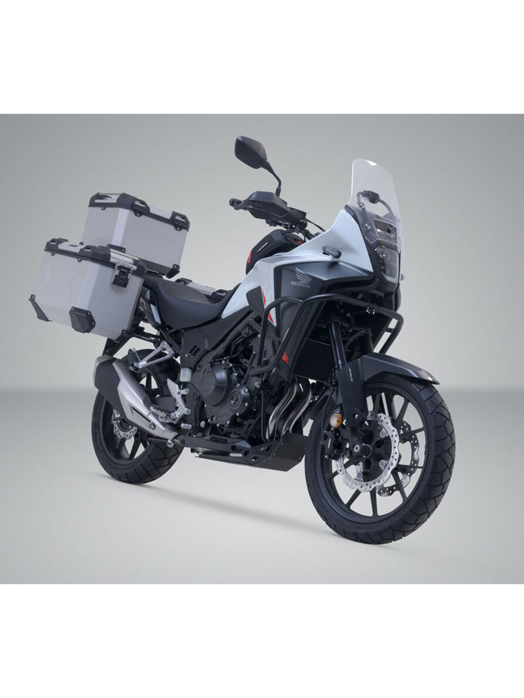 Zestaw: kufry boczne 45/45/38 + kufer centralny TRAX ADV + stelaże SW-MOTECH Honda CB 500 X (13-)/ NX500 (23-) [pojemność: 2 x 45l + 38l] srebrne