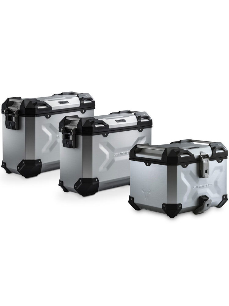 Ten zestaw to wszechstronny i bezobsługowy pakiet na każdą wycieczkę. Wodoszczelne i pyłoszczelne aluminiowe kufry TRAX ADV, czyli dwa kufry boczne i centralny zapewniają najlepszą ochronę bagażu. Dedykowane dla danego modelu motocykla stelaże na kufry boczne PRO oraz stelaż na kufer centralny STREET-RACK gwarantują optymalne dopasowanie i bezpieczne zamocowanie aluminiowych kufrów. Nasze wytrzymałe aluminiowe kufry TRAX ADV przekonują swoją stabilnością, nieprzepuszczalnością wody i pyłu, eleganckim stylem, przemyślanymi funkcjami i dużym wyborem dodatkowych akcesoriów. Aby jeszcze zwiększyć pojemność ładunkową, zestaw Adventure zawiera dwie akcesoryjne torby TRAX M / L. Są one mocowane na pokrywy kufrów bocznych. Torby te są wodoszczelne, a bagaż w nich schowany będzie bardzo szybko dostępny.