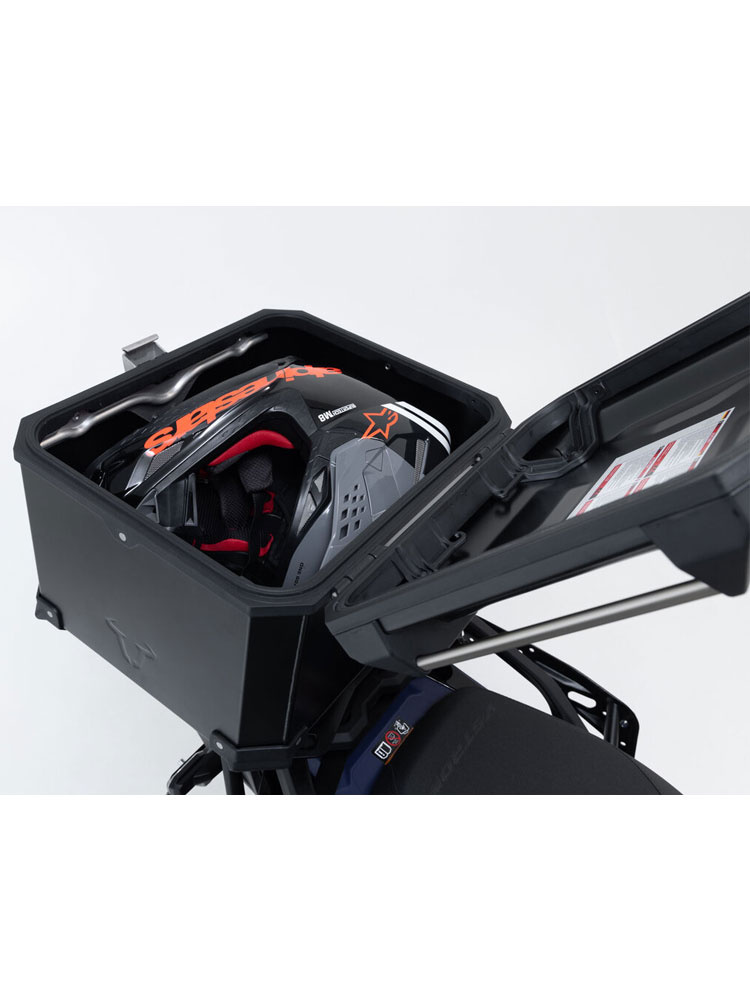 Kompletny zestaw, czyli wszystkie produkty pod jednym indeksem za pomocą których zamontujesz kufer centralny na swoim motocyklu. W skład tego zestawu wchodzą wszystkie produkty, tj.: kufer centralny TraX ADV, zamki do kufrów, płyta adaptacyjna, dedykowany do motocykla stelaż ADVENTURE-RACK. Przy rozwoju TraX ADV pojawiło się następujące wyzwanie. Zbudować kufry, które pokonają wszystkie przeszkody motocyklowej codzienności, lekkie i łatwe w obsłudze, po prostu dobre: od praktycznego zamka błyskawicznego, przez zdejmowalną pokrywę, po ergonomiczny uchwyt. TraX ADV łączą wysoką jakość z niską wagą. Ważą tylko od 4,6kg do 5,4 kg, czyli należą do grupy najlżejszych kufrów w swojej klasie.