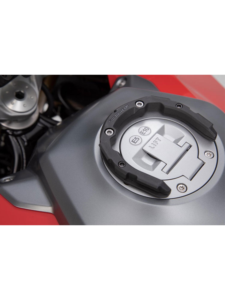 Opatentowany pierścień zbiornika PRO jest dopasowany do wlewu zbiornika motocykla. Zapewnia łatwy i szybki montaż torby na zbiornik.