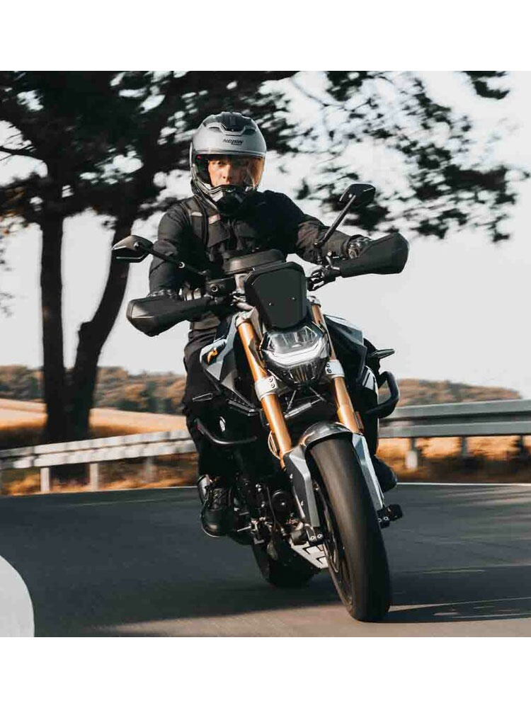 Zestaw osłon dłoni Sport od SW-Motech – najlepsze rozwiązanie zabezpieczające elementy sterujące na kierownicy motocykla i chroniące dłonie przed czynnikami atmosferycznymi. Zestaw ten, wykonany z myślą o precyzji i funkcjonalności, jest przeznaczony dla motocyklistów ceniących zarówno ochronę, jak i styl. Jego rdzeniem jest solidny aluminiowy wspornik, specjalnie dostosowany do Twojego motocykla, pokryty wysokiej jakości powłoką proszkową zapewniającą większą trwałość i eleganckie wykończenie. Sportowe osłony dłoni, wykonane z odpornego na uderzenia tworzywa polipropylenowego, zapewniają elastyczną, a jednocześnie potężną ochronę przed siłami zewnętrznymi. Niezależnie od tego, czy jest to zimne powietrze, czy krople deszczu zagrażające Twojemu chwytowi. Smukły kształt i matowa czarna powierzchnia nie tylko zapewniają stylową estetykę kierownicy, ale także świadczą o niezawodności zapewnianej przez nią ochrony. Instalacja jest prosta dzięki prostemu dwupunktowemu systemowi mocowania, który nie wymaga specjalnych narzędzi, co zapewnia bezproblemowy proces montażu.