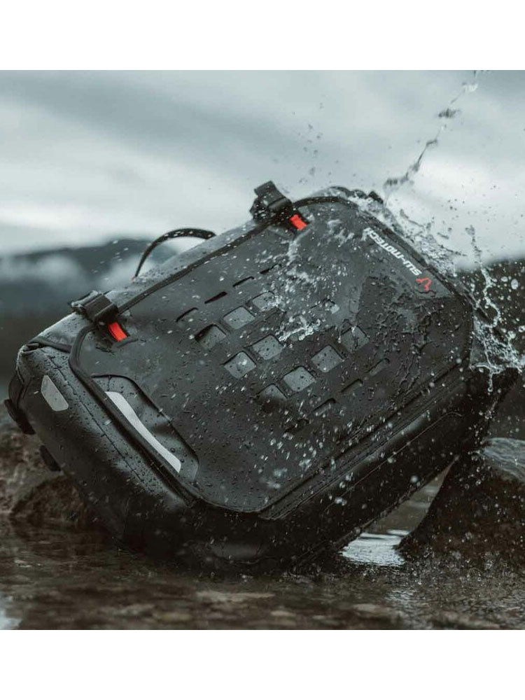 Torby są montowane na bagażniku PRO lub za pomocą pętli na ogonie. Podobnie jak wodoodporne torby na zbiornik, SysBag L WP są wykonane z podstawy TPU i komponentów EVA. Oba materiały są zgrzewane termicznie i łączone ze sobą, tworząc zwartą całość, dzięki czemu torba jest całkowicie wodoodporna. Modele SysBag WP są niezawodnymi towarzyszami bezkompromisowych przygód motocyklowych. Dzięki starannemu doborowi materiałów i starannemu wykonaniu torby są całkowicie wodoodporne i niezwykle wytrzymałe.
