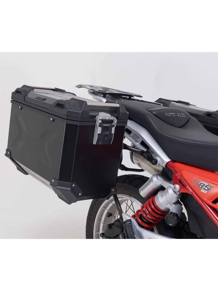 Zestaw: kufry boczne + stelaże PRO TRAX ADV SW-Motech Moto Guzzi V85 TT/ Strada/ Travel (24-) czarne [poj.: 45 + 37 L]