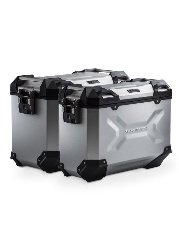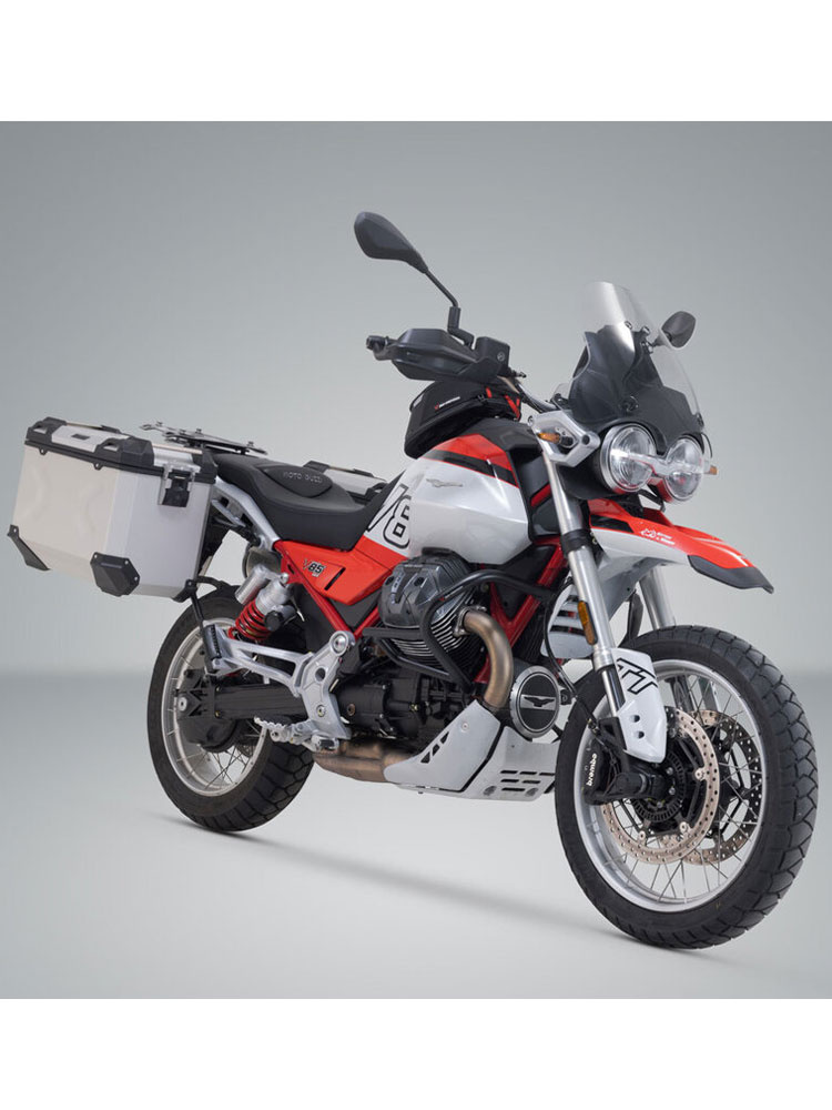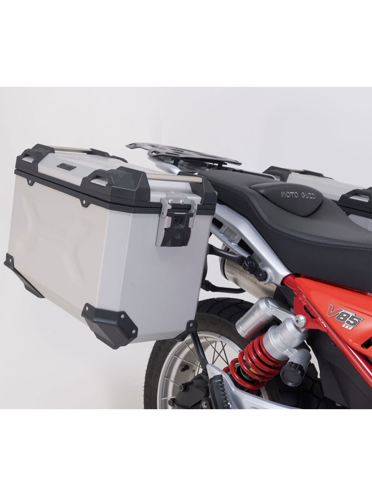 Zestaw: kufry boczne + stelaże PRO TRAX ADV SW-Motech Moto Guzzi V85 TT/ Strada/ Travel (24-) srebrne [poj.: 45 + 37 L]
