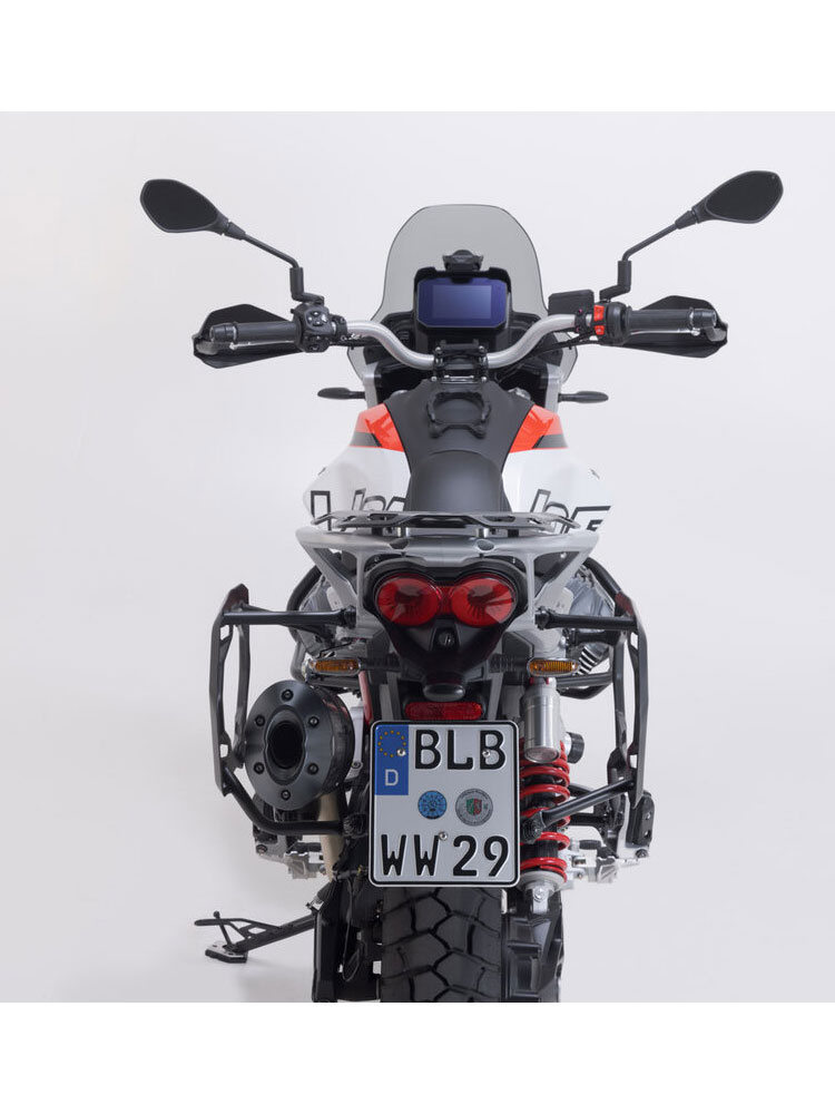 - W celu zamontowania na stelażu kufrów SW-Motech czy też kufrów innych producentów wymagane są adaptery.