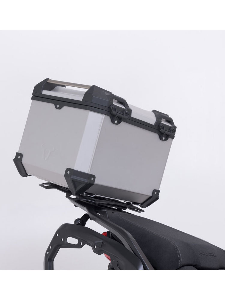 Zestaw: kufer centralny srebrny TRAX ADV + stelaż Adventure-rack SW-Motech Moto Guzzi Stelvio (23-) [poj.: 38l]