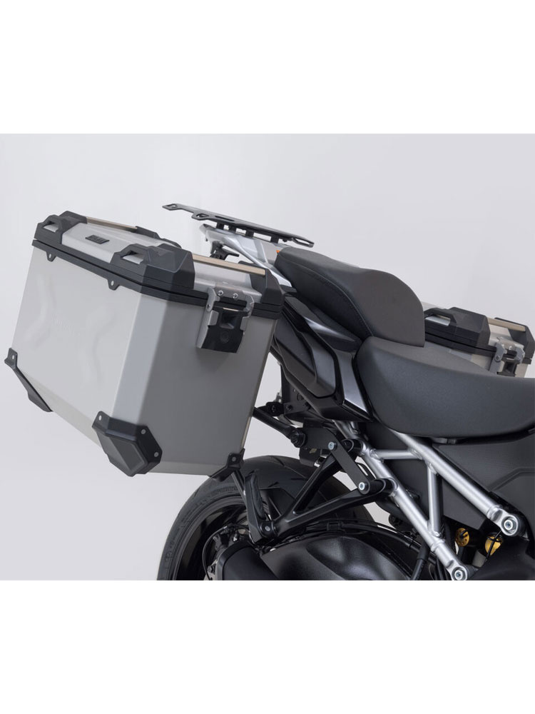 Ten zestaw to wszechstronny i bezobsługowy pakiet na każdą wycieczkę. Wodoszczelne i pyłoszczelne aluminiowe kufry TRAX ADV, czyli dwa kufry boczne i centralny zapewniają najlepszą ochronę bagażu. Dedykowane dla danego modelu motocykla stelaże na kufry boczne PRO oraz stelaż na kufer centralny Adventure-RACK gwarantują optymalne dopasowanie i bezpieczne zamocowanie aluminiowych kufrów. Nasze wytrzymałe aluminiowe kufry TRAX ADV przekonują swoją stabilnością, nieprzepuszczalnością wody i pyłu, eleganckim stylem, przemyślanymi funkcjami i dużym wyborem dodatkowych akcesoriów. Aby jeszcze zwiększyć pojemność ładunkową, zestaw Adventure zawiera dwie akcesoryjne torby TRAX M / L. Są one mocowane na pokrywy kufrów bocznych. Torby te są wodoszczelne, a bagaż w nich schowany będzie bardzo szybko dostępny.