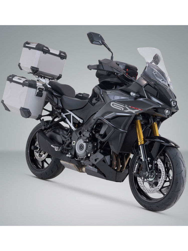 Zestaw: kufry boczne 45/45l + kufer centralny TRAX ADV + stelaże SW-Motech Suzuki GSX-S1000 GX (23-) srebrne