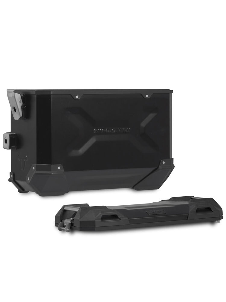 Wytrzymałe aluminiowe kufry TRAX ADV sprawiają, że czujesz się jak w domu na każdym odcinku drogi: wytłoczone wzory zwiększają stabilność spawanego aluminium o grubości 1,5 milimetra. Całkowicie zdejmowana pokrywa z uchwytami wykonanymi z anodyzowanego aluminium oraz zapięcie błyskawiczne ułatwiają załadunek i rozładunek bagażu motocyklowego; fazowana krawędź boczna zapewnia duży prześwit podczas pokonywania zakrętów. Stelaż i wielkość kufrów są idealnie dopasowane do tylnego kształtu i układu wydechowego motocykla. Przy rozwoju TRAX ADVENTURE pojawiło się następujące wyzwanie. Zbudować kufry, które pokonają wszystkie przeszkody motocyklowej codzienności, lekkie i łatwe w obsłudze, po prostu dobre: od praktycznego zamka błyskawicznego, przez zdejmowalną pokrywę, po ergonomiczny uchwyt. TRAX ADVENTURE łączą wysoką jakość z niską wagą. Ważą tylko od 4,6kg do 5,4 kg, czyli należą do grupy najlżejszych kufrów w swojej klasie.