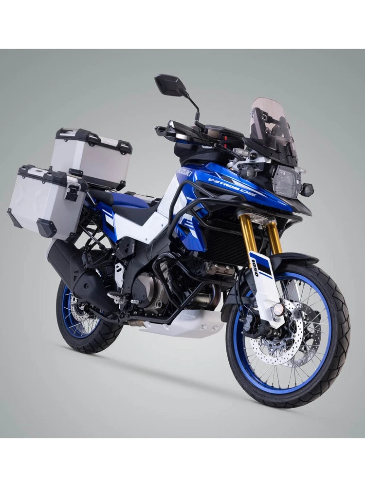 Zestaw: kufry boczne 45/45l + kufer centralny TRAX ADV + stelaże SW-Motech Suzuki V-Strom 1050 DE (23-) srebrne