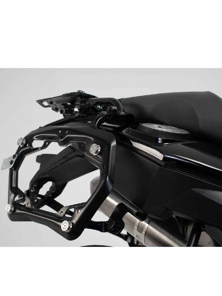 - Bardzo pewne i stabilne trzymanie kufrów DUSC,TRAX i AERO oraz sakw SysBag 15 i SysBag 30