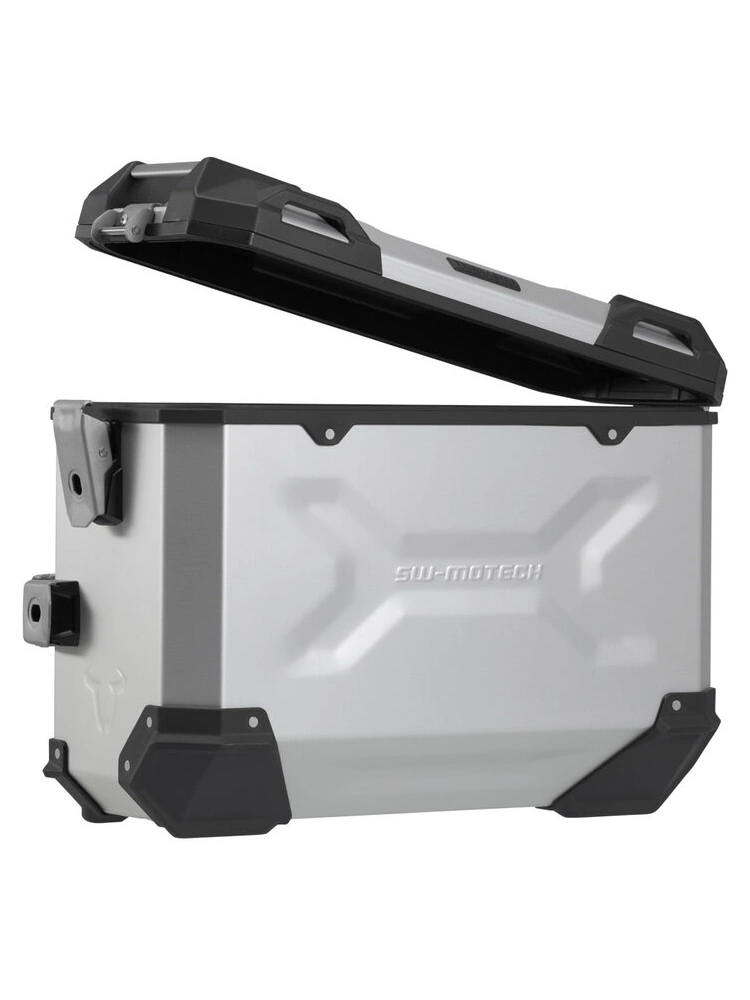 Aluminiowe kufry SW-MOTECH TRAX ADV na nowo definiują doskonałość bagażu motocyklowego. Wykonane z wytrzymałego aluminium o grubości 1,5 milimetra z wytłoczonymi wzorami zwiększającymi stabilność, TRAX ADV jest świadectwem wytrzymałości i niezawodności. Całkowicie zdejmowana pokrywa, wyposażona w uchwyty do przenoszenia z anodyzowanego aluminium i szybkozamykacze, zapewnia łatwy załadunek i rozładunek, a ścięta krawędź boczna gwarantuje optymalny prześwit pod pojazdem podczas pokonywania zakrętów. Zestaw kufrów Trax ADV obejmuje dwa wodoodporne kufry boczne TRAX ADV, uzupełnione dwoma zdejmowanymi bocznymi stelażami SW-MOTECH, zestaw adapterów, zestaw zamków, ogranicznik pokrywy i zabezpieczenie antykradzieżowe – wszystko w pakiecie w atrakcyjnej cenie. Stelaż dostosowany do konkretnego motocykla i precyzyjnie dopasowane rozmiary kufrów idealnie współgrają z kształtem tyłu motocykla i układem wydechowym. Przy opracowywaniu TRAX ADV nie było żadnych kompromisów. Kładąc nacisk na stabilność, nieprzepuszczalność dla kurzu i wody oraz przyjazną dla użytkownika obsługę, te wysokiej jakości aluminiowe kufry sprostają każdemu wyzwaniu. Niezależnie od tego, czy wyruszasz na przygodę w terenie, dłuższą podróż czy szybką przejażdżkę, TRAX ADV ze ścianami o grubości 1,5 milimetra okazuje się niepokonanym mistrzem, gotowym towarzyszyć Ci w każdej podróży.