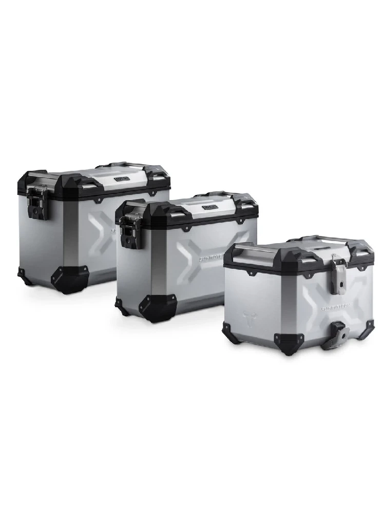 Zestaw: kufry boczne 45/37L + kufer centralny 38L TRAX ADV+ stelaże SW-Motech Triumph Tiger 900 GT/ Pro, Rally Pro (23-) srebrne
