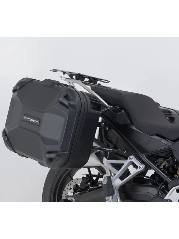 Zestaw: kufry boczne DUSC M i L + kufer centralny DUSC L + stelaże PRO + stelaż Adventure-Rack SW-Motech BMW F 900 GS Adventure (24-) [poj.: 1 x 33l + 2 x 41l]