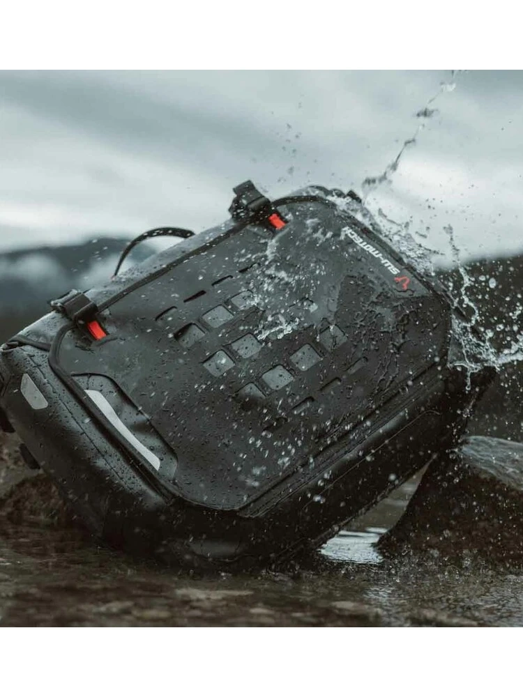 Torby są montowane na bagażniku PRO lub za pomocą pętli na ogonie. Podobnie jak wodoodporne torby na zbiornik, SysBag L WP są wykonane z podstawy TPU i komponentów EVA. Oba materiały są zgrzewane termicznie i łączone ze sobą, tworząc zwartą całość, dzięki czemu torba jest całkowicie wodoodporna. Modele SysBag WP są niezawodnymi towarzyszami bezkompromisowych przygód motocyklowych. Dzięki starannemu doborowi materiałów i starannemu wykonaniu torby są całkowicie wodoodporne i niezwykle wytrzymałe.