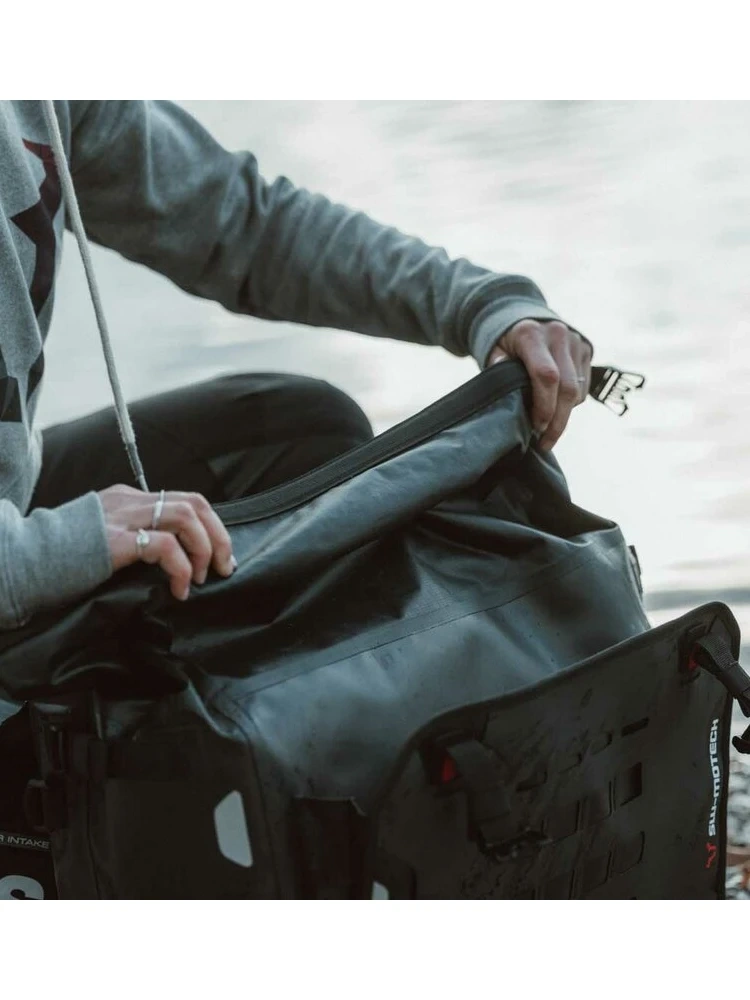 Torby są montowane na bagażniku PRO lub za pomocą pętli na ogonie. Podobnie jak wodoodporne torby na zbiornik, SysBag L WP są wykonane z podstawy TPU i komponentów EVA. Oba materiały są zgrzewane termicznie i łączone ze sobą, tworząc zwartą całość, dzięki czemu torba jest całkowicie wodoodporna. Modele SysBag WP są niezawodnymi towarzyszami bezkompromisowych przygód motocyklowych. Dzięki starannemu doborowi materiałów i starannemu wykonaniu torby są całkowicie wodoodporne i niezwykle wytrzymałe.