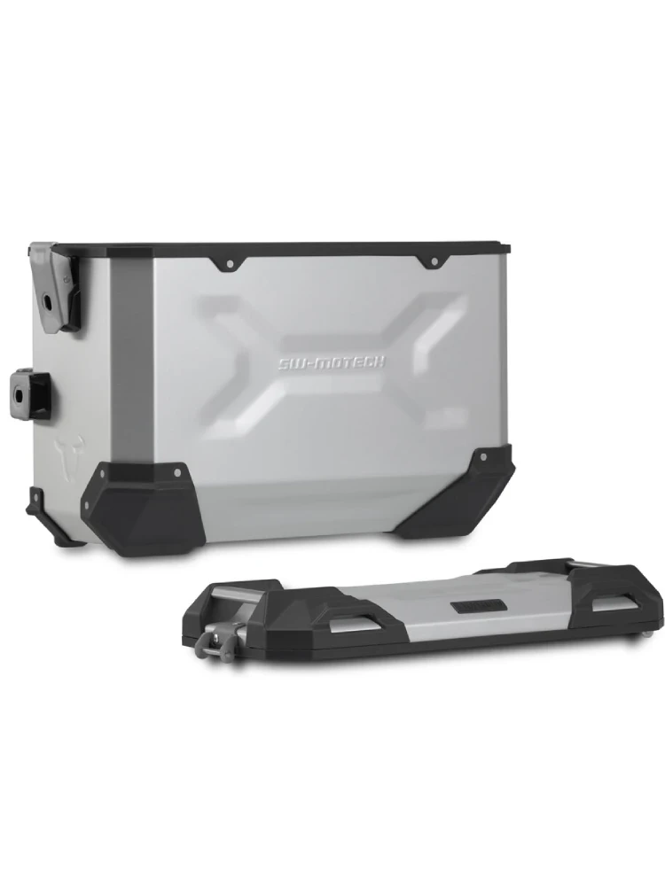 Wytrzymałe aluminiowe kufry TRAX ADV sprawiają, że czujesz się jak w domu na każdym odcinku drogi: wytłoczone wzory zwiększają stabilność spawanego aluminium o grubości 1,5 milimetra. Całkowicie zdejmowana pokrywa z uchwytami wykonanymi z anodyzowanego aluminium oraz zapięcie błyskawiczne ułatwiają załadunek i rozładunek bagażu motocyklowego; fazowana krawędź boczna zapewnia duży prześwit podczas pokonywania zakrętów. Stelaż i wielkość kufrów są idealnie dopasowane do tylnego kształtu i układu wydechowego motocykla. Przy rozwoju TRAX ADVENTURE pojawiło się następujące wyzwanie. Zbudować kufry, które pokonają wszystkie przeszkody motocyklowej codzienności, lekkie i łatwe w obsłudze, po prostu dobre: od praktycznego zamka błyskawicznego, przez zdejmowalną pokrywę, po ergonomiczny uchwyt. TRAX ADVENTURE łączą wysoką jakość z niską wagą. Ważą tylko od 4,6kg do 5,4 kg, czyli należą do grupy najlżejszych kufrów w swojej klasie.