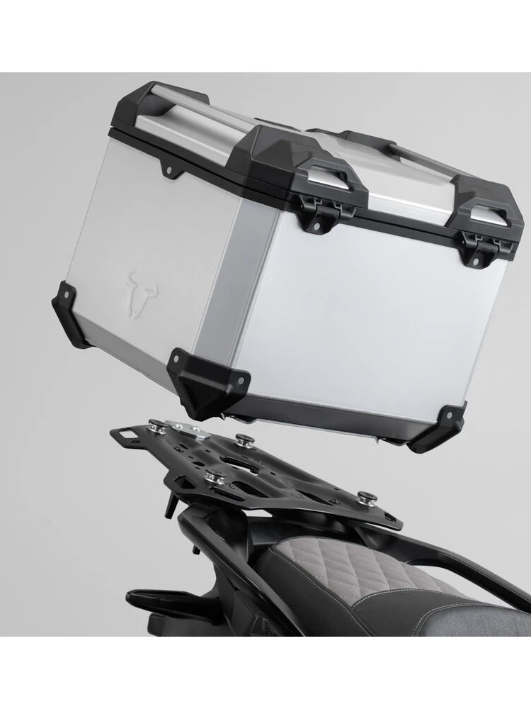 Zestaw: kufry boczne + kufer centralny TRAX ADV + stelaże SW-Motech KTM (wybrane modele) srebrne [poj.: 2 x 37l + 38l]