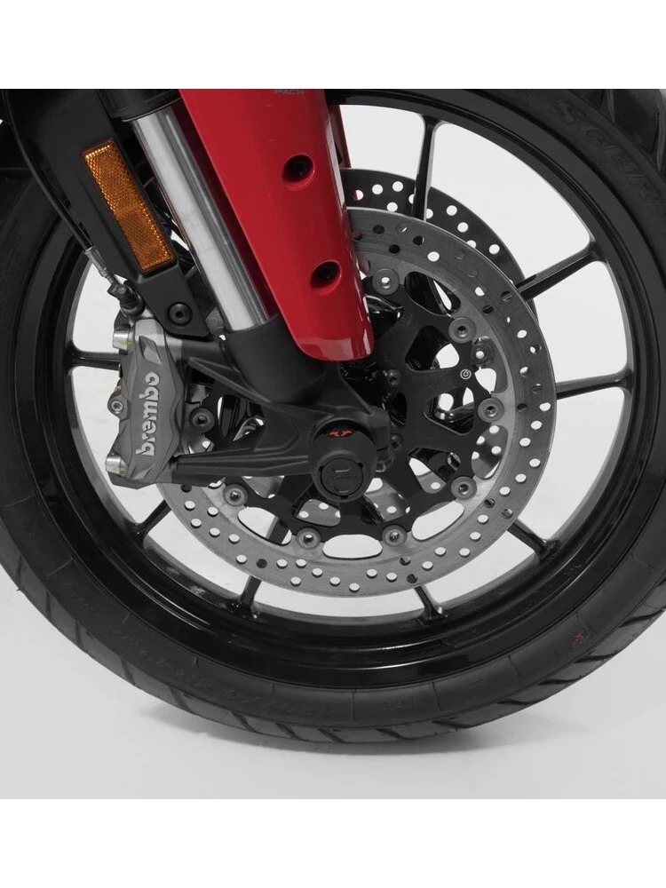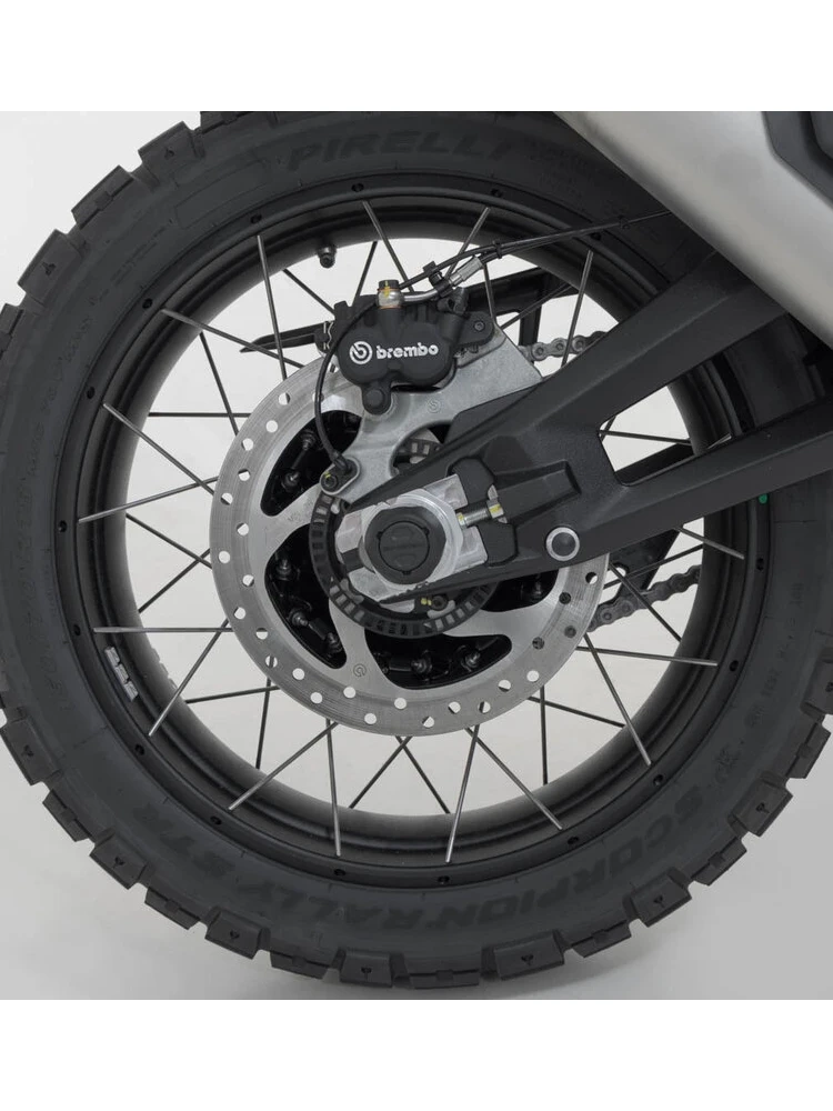 - łatwy montaż za pomocą gwintu osi i podkładek dystansowych dostosowanych do modelu motocykla